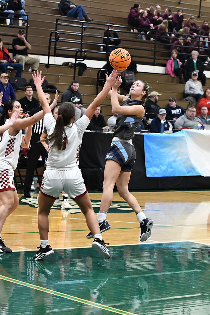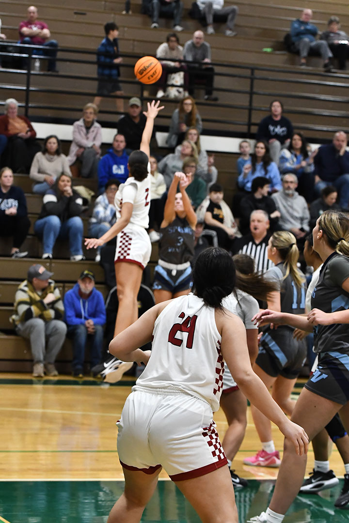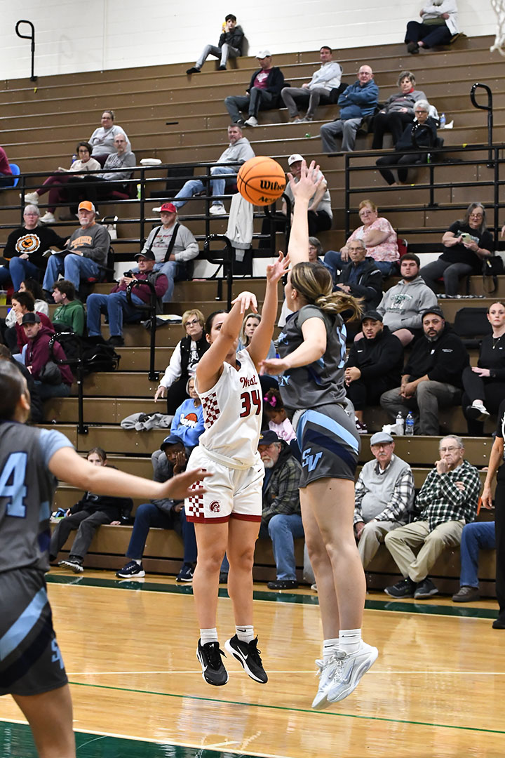 Here came the Trojans back. A free throw by Jhaniya Mitchell answered by two free tosses by Brooklyn Ellis of the Wolves had the West Virginians up 71-67 with 32 seconds left. Kinleigh Holt came through with a 3-pointer at the 21 second mark to cut the gap to 71-70.
