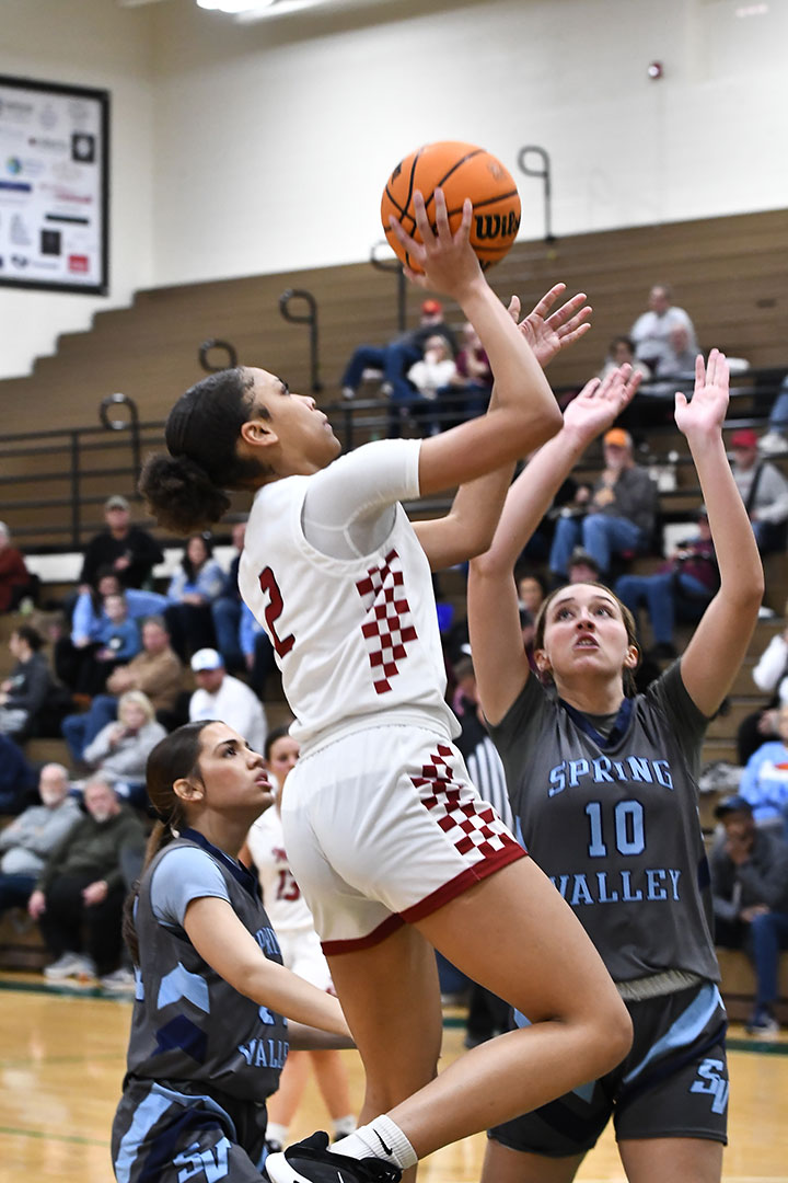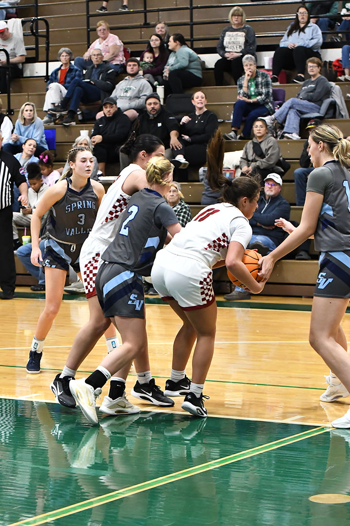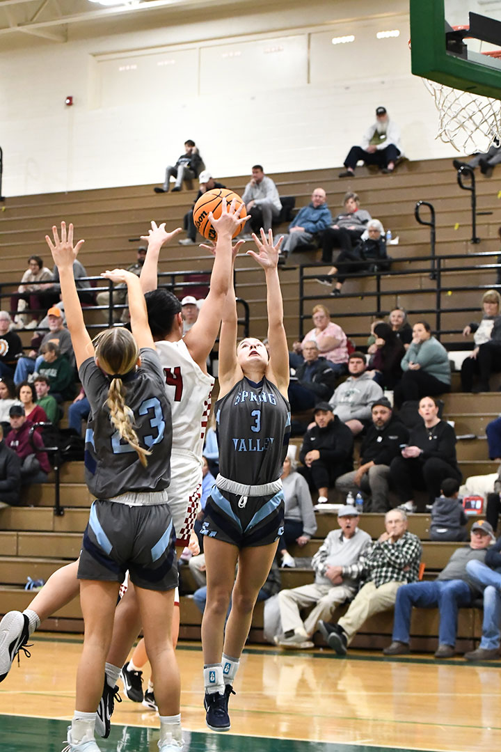 The game was nip-and-tuck from the outset, with the score tied at the rest stop of the first two quarters, including 36-36 at intermission. Spring Valley moved ahead by one at the end of three, but it was not until the final horn sounded that a winner was determined.