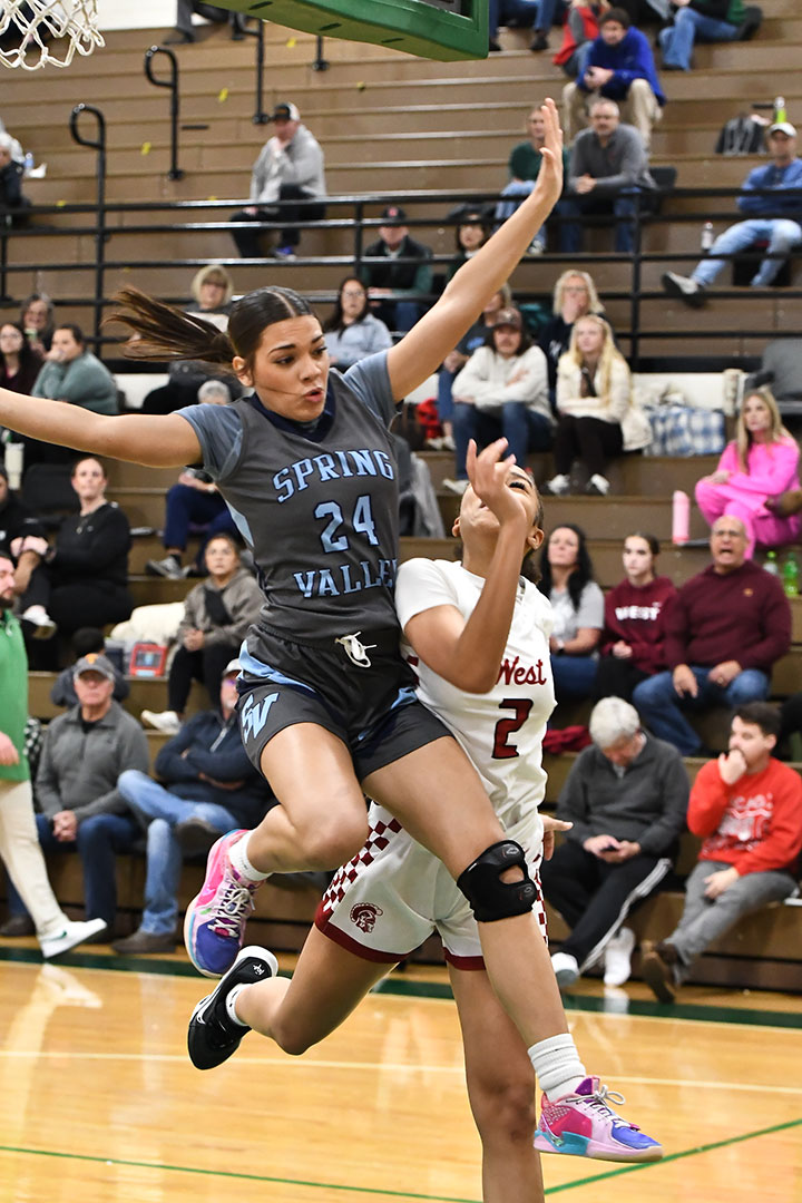 Spring Valley gave West the final chance by throwing the pass out of bounds as they moved into front court with nine seconds to go But the Trojans could not get the game-winner, as the last second shot by Mitchell bounced away.