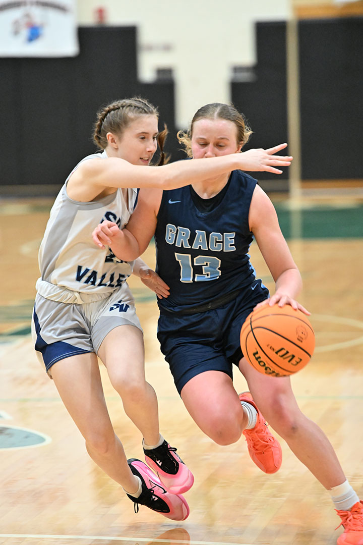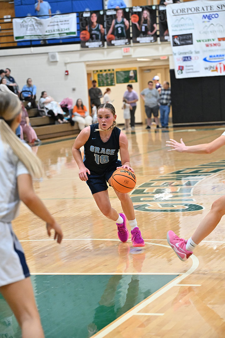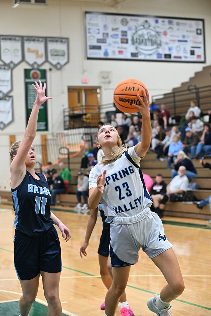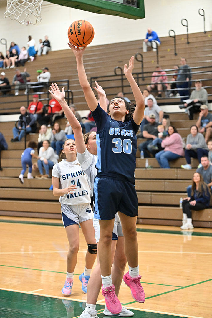 Grace rolled to a 40-21 lead at intermission and denied Spring Valley a rally in the second half of play. The Wolves got 15 points from Sophi Hutchison, 12 points from Brooklyn Ellis and 10 points and eight rebounds from Emma Edwards.
