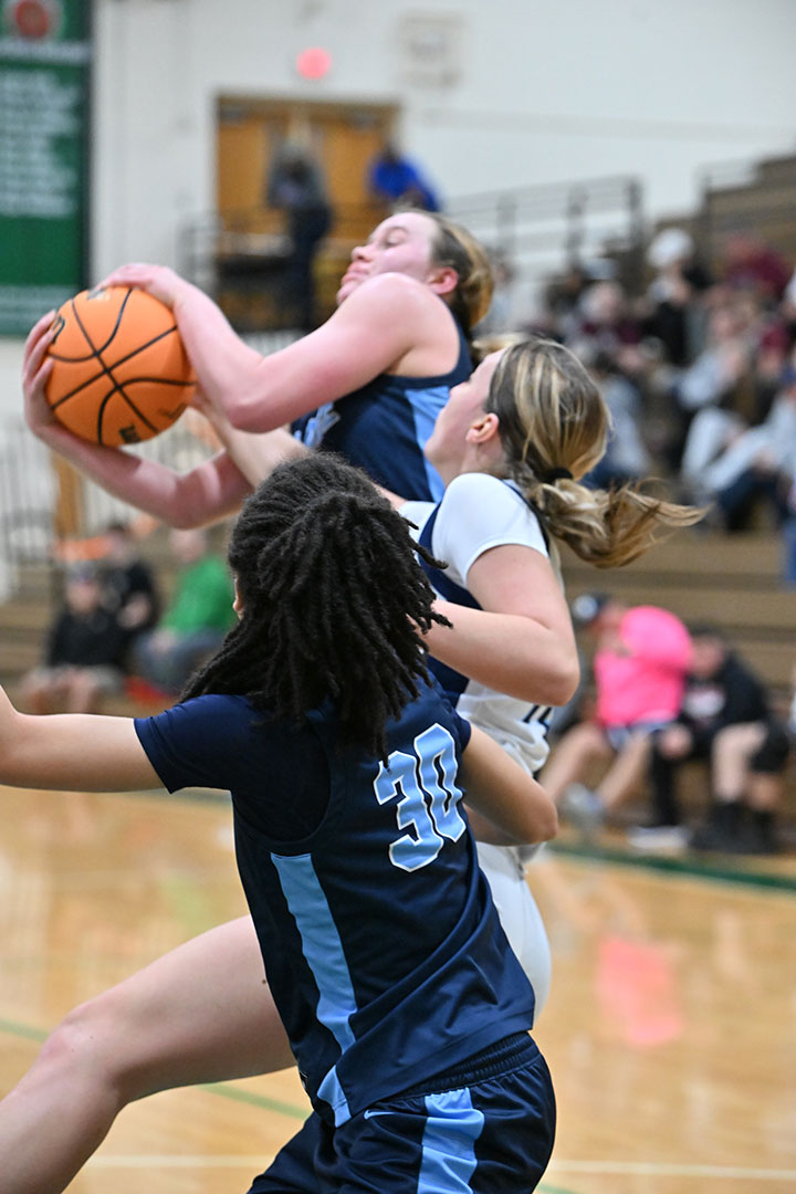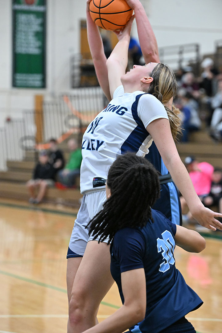 The one-two punch of Abby Roberts and Nya Burns combined for 47 points, 24 for Roberts and 23 for Burns, to lead the Rams.